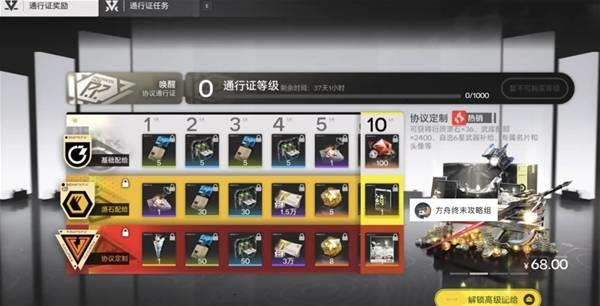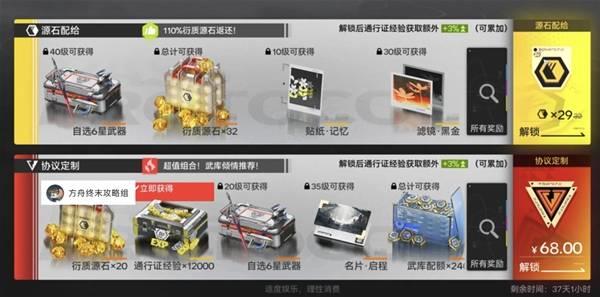 协议定制:充值档,通过68R购买获得,内含更多养成材料 1.2w战令 立即获得20个衍质源石(共计36个源石) 自选6星武器 2400武库配额,比上面两个档位的合起来都多。