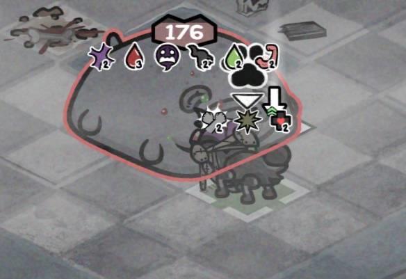 所以下水道boss鲍里斯就成为了我们首个实验目标,很快boss身上就叠满了五花八门的负面效果,我们不停的上毒,导致鲍里斯不出2个回合就倒在地上。