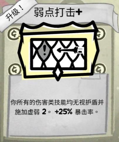 之后我们深入洞穴,升级了两个被动,【血肉模糊 】可以加4点伤害,让我们不至于一直挨打而没有还手的能力,【弱点打击 】则有额外 25%暴击几率,只能说给的实在不算很多。