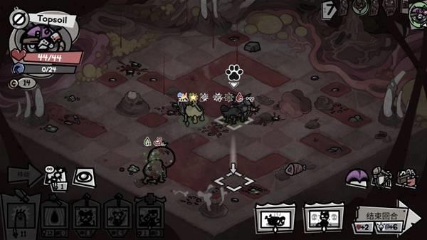 突发事件,在通过精英后我们遇到了一只流浪猫,名字叫做Topsoil,加入了我们的队伍,这对于我们而言确实是一个意料之外的事情,更何况这只猫并不携带不变之石。我们本来的思路是利用【换皮伪装】来进行全程无伤,现在突然多了一只猫,Turner的经验也会被分走,我们本来是打算在道中处理掉这只猫的,因为其被动【血肉模糊】和天赋【激增冲击】实在是没什么用处,不过快要打BOSS了,我们仍要理性思考,还是让他暂时来当一下我们的肉盾,或许在BOSS战斗中就自己死掉了呢?
