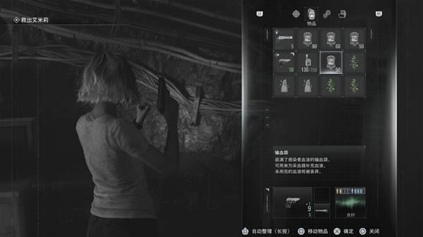 箱子整理一下,取出全部绿色药草、废料、输血袋,然后单独存一个档存档2。使用全部血液制作物品,直到无法再使用血液为止,此时存个别的档存档3。反复读取存档2,花费全部血液,然后覆盖存档3,直到使用掉5000血量时,获得奖杯:采血能人,之后就用存档2继续进行游戏。