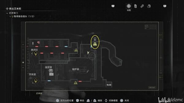 来到禁闭区最西侧,调查配电器上方图纸,获得【文件39:打开牢门的方法】。同时按住拔出插头,获得关键物品:接合插头1。拿了插头,背后会刷出“女孩”玛莉,要么躲在配电器附近的房间等玛莉走开,或者直接冲过去被咬了也能马上出去,反正血药多。返回监控室,等玛莉追赶的音乐消失再出去。