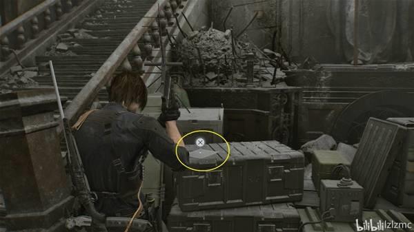 指挥室西侧,如图废墟瓦砾里,使用手枪打掉黑白浣熊先生21。出指挥室往南走,遇到陈年老丧尸,打倒后继续前进来到接待处,使用手枪打掉吊扣降下梯子。