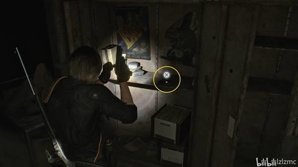 原路返回1楼指挥室,路上遇到之前的丧尸,步枪爆头让他安息(之前只能打倒不能爆头),进入指挥室,如图站在黑板前的木板上,转过身在电视机框里,获得关键物品:储物柜钥匙。ps:这里窗外还有生化2的豆腐君彩蛋,另外只有获得文件57和文件59后才会出现钥匙。