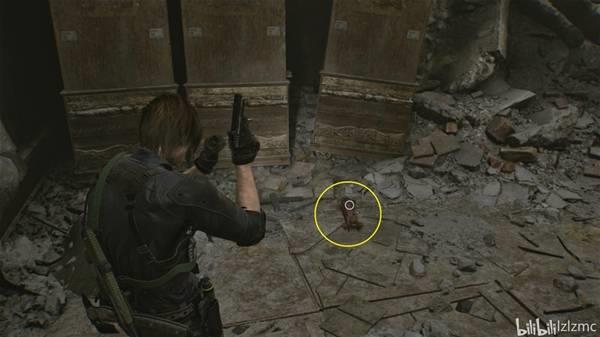 就在浣熊市中心入口的最西侧,如图废墟上,使用手枪打掉黑白浣熊先生20。
