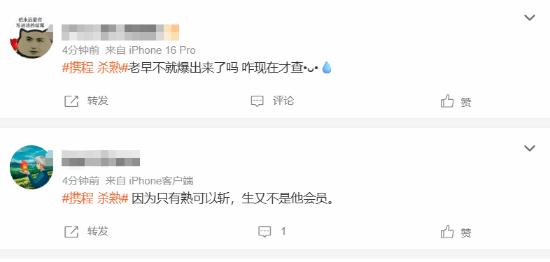 相关话题“携程 杀熟”也登上微博热搜,吸引大量网友关注。