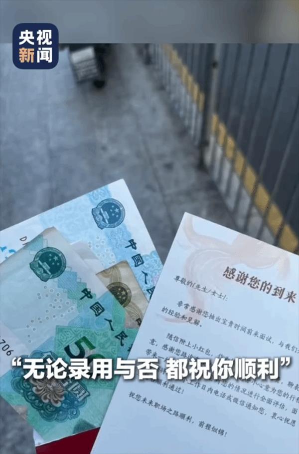 据央视新闻报道,求职者李碧华发帖称,她在深圳龙华区面试时遇到了一家“神仙公司”,刚进公司就受到热情接待,还收到一封感谢信,并附上66元现金红包作为交通补助。