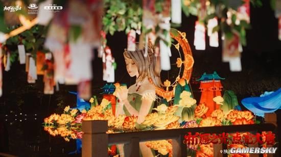 越过狭小的传送门后,眼前豁然开朗,游园会的主会场已在眼前。首先堆满视野的,就是一个35米长的巨型赛丽亚花灯。由传统制灯工艺做成的赛丽亚,放在周围一圈唐风十足古色古香的园林建筑中没有任何违和感。我特意观察了一下,几乎每个来到这里的游人,无论是否是DNF手游的玩家,都会被巨大华丽的花灯震得停下脚步,老玩家们会惊喜地喊出赛丽亚的名字,心照不宣地互相微笑后便开始掏出手机狂拍。