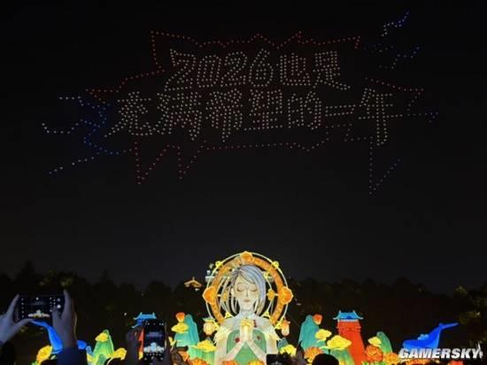 信步走出园区的路上,还能看到三两成群的人在聊着游戏里的内容,这种独特的感觉,是线上的虚拟世界里无论如何也无法感受到的。就像你曾热爱的事物,突然在现实中有了一个输出的锚点。周围的人无论是因为热爱而相聚,还是只是因为好奇, 都能在其中找到自己的归属。这种感觉就像是在无人机表演的最后被我手忙脚乱拍下的那句话“2026也是充满希望的一年”,也许你不知道它是游戏里的一句台词,但也能感受到其中真诚的祝福。