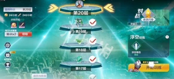 1、勇气训练:通过消耗训练点提升全体奥特曼属性,训练点可通过副本首通获得。
