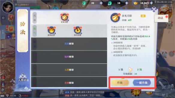玩家消耗元宝可提升各功法的等级,拥有更强的伤害效果。