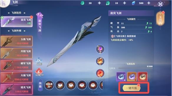 提升飞剑等级可增强其破甲、气血、攻击等属性。