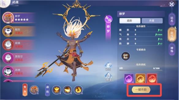 拥有初、中、高级武魂结晶后,玩家可给武魂升阶,强化其战技,拥有更强输出伤害能力。