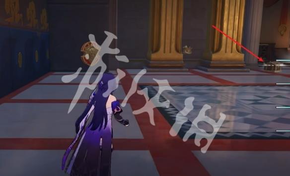 24、到达后,向右转,往箭头处走,即可看到一个宝箱。