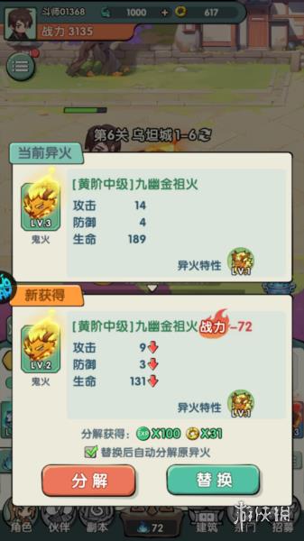 2、游戏中玩家可以通过熔炼异火来获取装备,进而提升属性,若获得等级较低的异火装备,可直接将其分解,获得经验和代金券奖励。