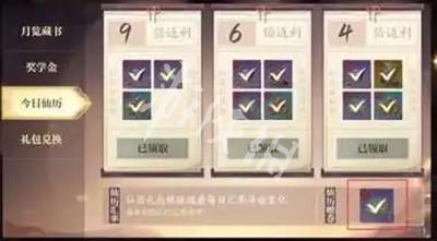 4、每⽇学院任务:产出⻆⾊打造材料,活⼒恢复药剂,武器培养材料和三张阵灵抽奖券以及少量仙钞(可以理解为绑定点券)。