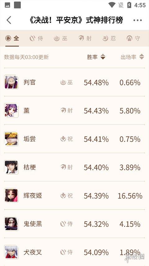 3、将看到游戏正式服中实时更新的式神排行榜信息。