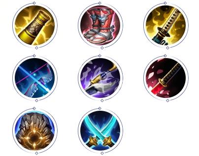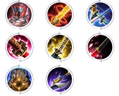 1、出装:高天雷震、噬魂足具、封魔箭矢、天探女之岚、鬼刃鹤丸、凶刀鬼丸、天岩户之扉、千鸟双月