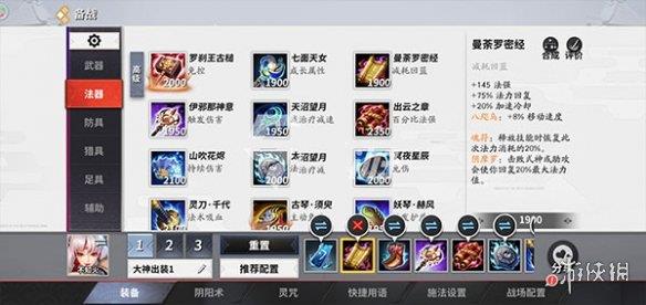 3、第一件装备建议选择七面天女镜,这件装备不仅伤害效果在线,而且对于法力值的回复效果十分出色。