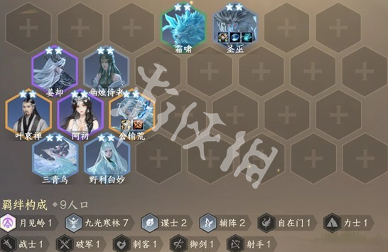 1、核心羁绊:1月见岭7九光寒林2辅阵2谋士
