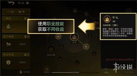 11、及时解锁与提升职业技能,使用职业技能可加快发育速度或为盟友提供支持,因此,需通过讨贼、军演等方式获取职业经验,解锁更多职业技能。