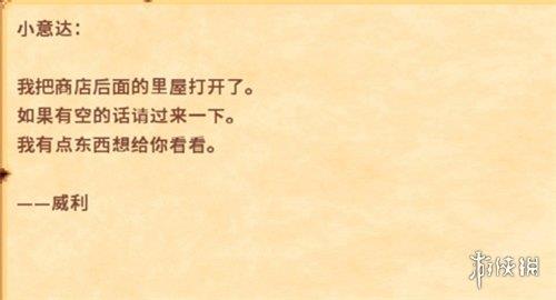 2、隔天起床后,玩家会收到威利寄来的信,看完信后,前往威利的鱼店。