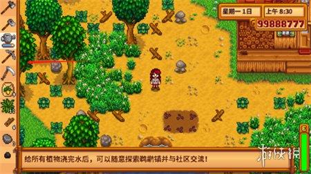 7、走出房间后,可在附近区域开始开荒,游戏界面左侧是工具栏。
