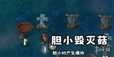该植物具备胆小菇的攻击特性,当敌人靠近时,会触发其毁灭菇的爆炸特性。