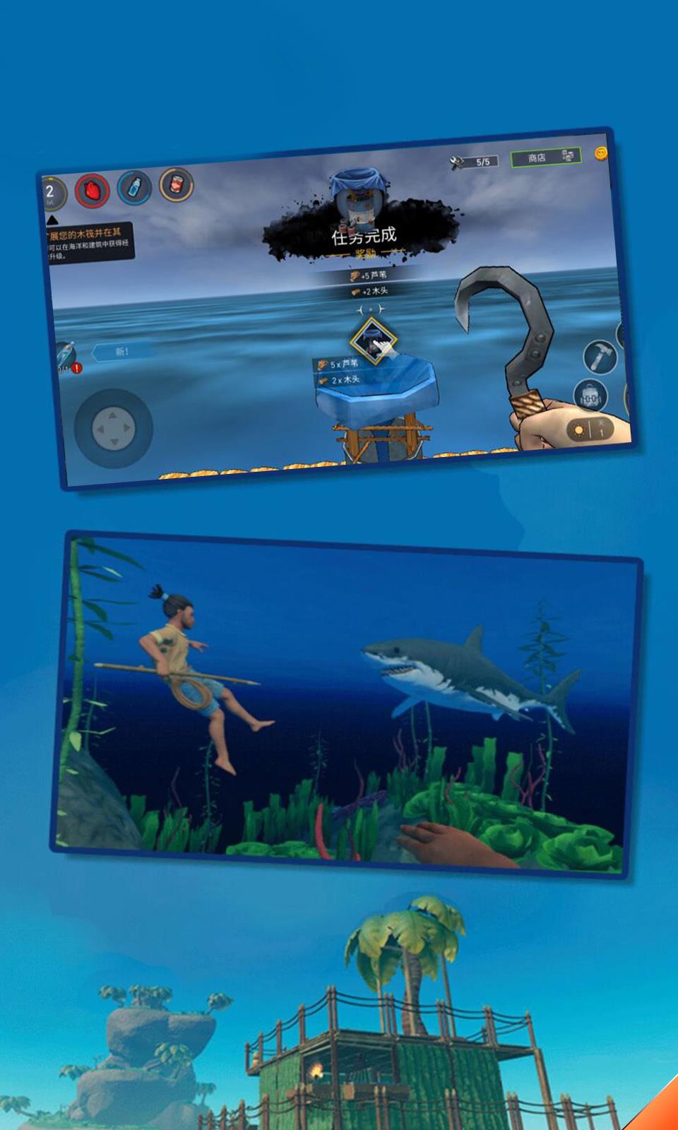 《模拟木筏生存》是一款冒险类的海洋存活游戏,目标是以任何方式在海洋中间的筏子上生存。打击鲨鱼,建立浮动堡垒,努力生存下去。你可以从绑在一起的几块木板开始,就像在其他漂流生存中一样!抓住漂浮的残骸,处理它们,并建立一个巨大的筏子。建造任何形式和大小的浮动堡垒,完全取决于你。在这个生存冒险游戏中,你要如何在木筏上寻求生存和寻求安全的土地生活。