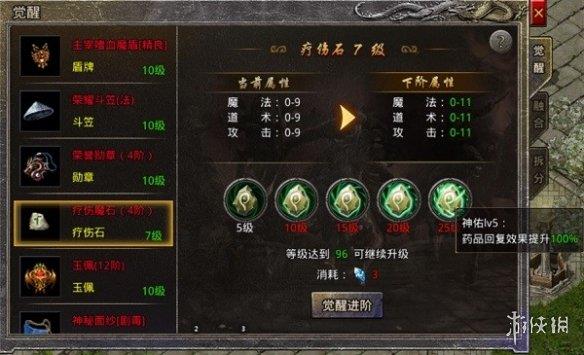 6、疗伤石觉醒获得神佑技能,药品回复效果提升。