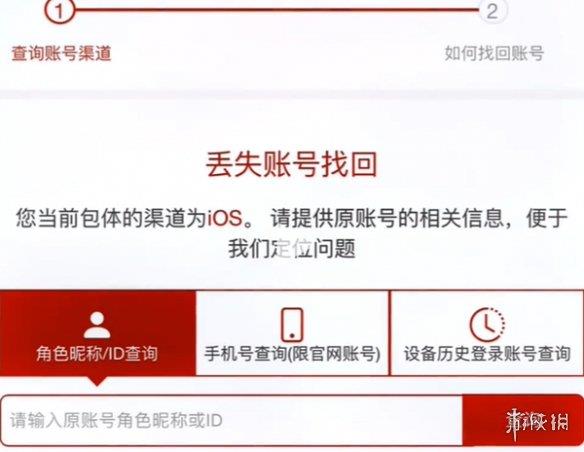 3、可以选择角色昵称/ID查询、手机号查询、设备历史登录账号查询三种方法。