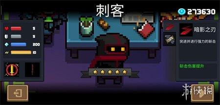 刺客是免费角色中不可替代的存在,他本身血量并不厚,但为何这么多人使用他呢?原因在于他强大的技能:接近两秒的强制无敌时间,并加速移动,击杀怪物还可以刷新冷却时间,如果把控得当,他可以坐上元气骑士的第一把交椅,即使是新手使用,也可以躲掉部分子弹,这个角色的特色就是他的无敌时间,使用方法一般是:面对小怪时开启大招挡弹幕并顺便攻击一个,面对boss时则一看情况紧急就开启大招强行贴脸手刀一波,伤害与游侠相当,这个角色生存能力强,手刀攻击高,易上手,是免费角色中的新手福利。