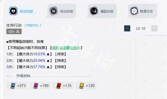 1、效果:每次使用爆裂技能时,提升自身最大体力: