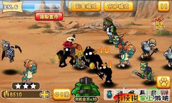 目前,游戏的核心玩法是「兵来将挡,水来土掩」。玩家需要根据每一关不同的僵尸大军类型,合理选择上阵的士兵,以尽可能快速、无损地离开战场。