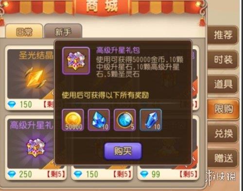 5、此外还有个省钱方法,商城--限购—高级升星礼包。