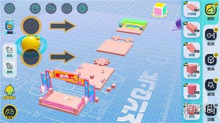 基础操作:除了基础摆放,还可以将翻转板与其他小机关组合,如将放电柱绑定在翻转板上,实现同步运动,增加闯关难度。