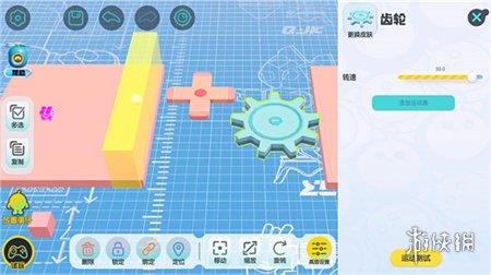 找到机关中的齿轮并拖出,即可实现基础摆放,你还可以通过【旋转】调整齿轮方向,通过【缩放】调整齿轮大小,完成设置后,点击左侧【复制】按钮,即可快速复制组件。