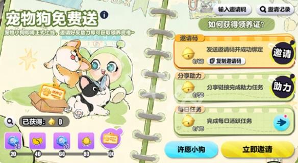 2、养宠系统近期上线后,凭此证即可邀请好友一起养育你们的专属小狗。