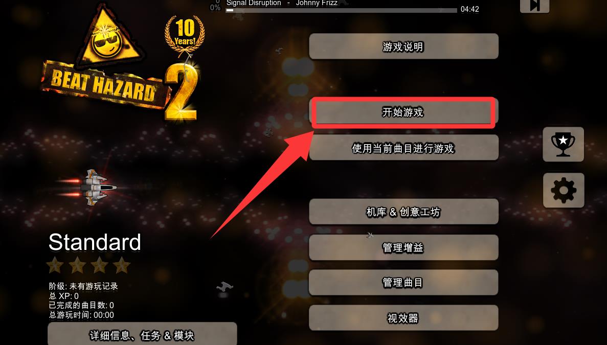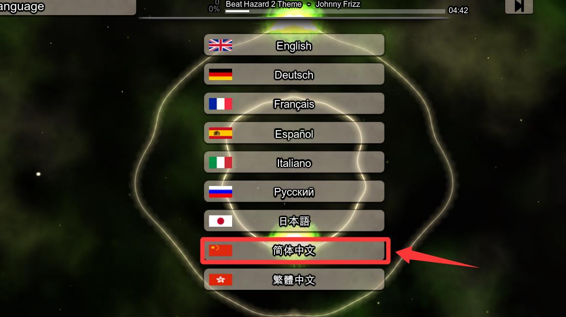 beathazard2手游新手教程1、进入游戏点击红色框框里的箭头中文。