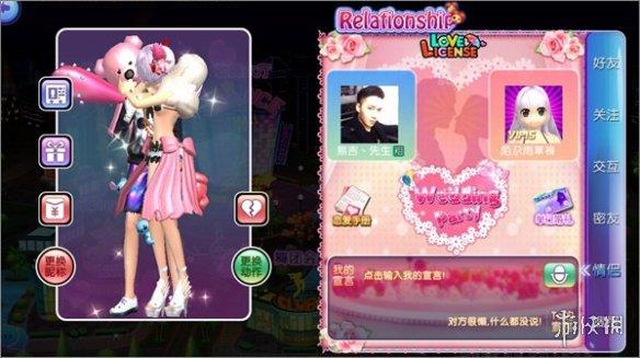 4. 成为好友或密友后,通过提升友好度或亲密值,双方可以申请成为情侣。成为情侣后,通过结婚仪式,将开启夫妻系统。成为夫妻后,玩家同样可以为对方设置专属昵称和专属动作,领取神秘的情侣奖励。随着婚龄等级的提升,还将解锁更多专属的合成服装。心动不如行动,快去寻找让你心动的Ta吧!