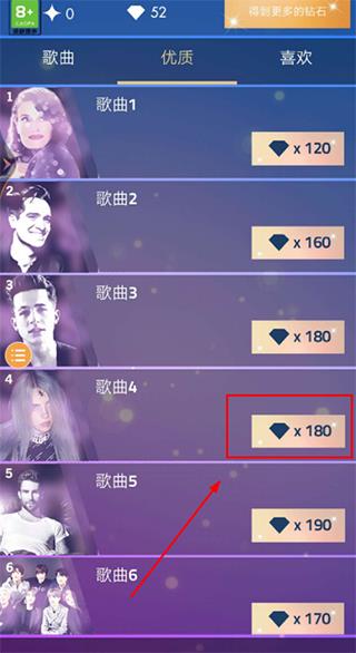 4、完成游戏后,系统会根据你的得分给与相应的钻石奖励,你可以用来解锁其他歌曲哦!