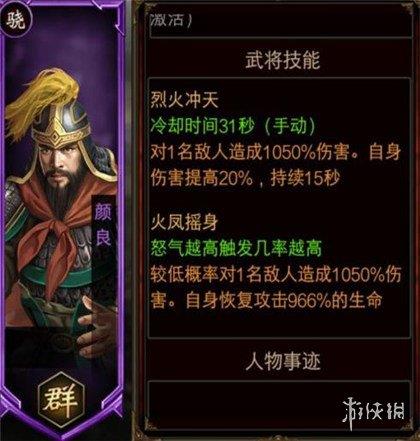 尽管颜良是一名紫色武将,但他的伤害输出却相当可观,他的技能能对敌人造成高达1050%的伤害。