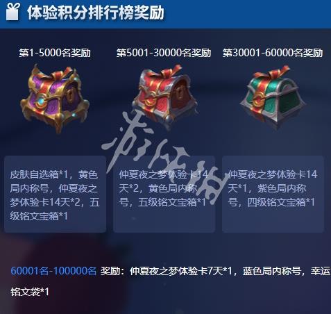 二、体验积分排名奖励规则