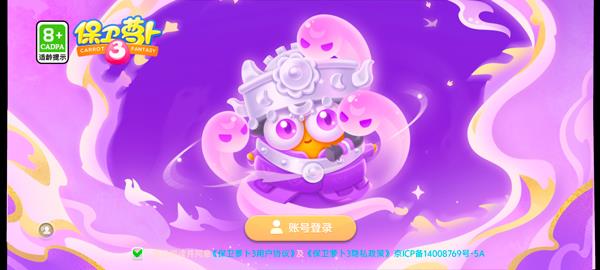 保卫萝卜3小米版怎么登录?1、打开保卫萝卜3小米渠道版,点击账号登录;