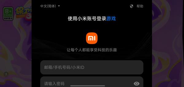 3、然后输入小米账号密码登录;