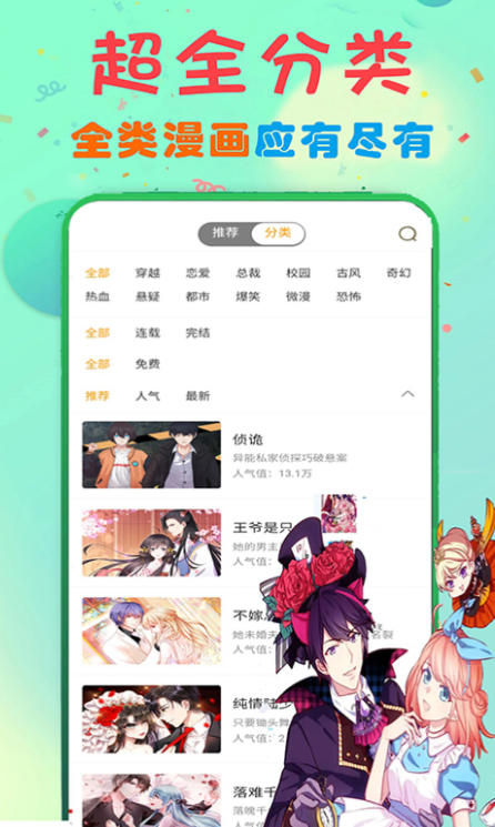 《咚漫漫画》提供了广泛的细致分类,让用户可以方便地选择不同类型的漫画进行在线观看。独特的彩色漫画进一步增强了用户的视觉体验。该应用还支持用户关注自己喜欢的作品,以便及时获取最新更新的内容。