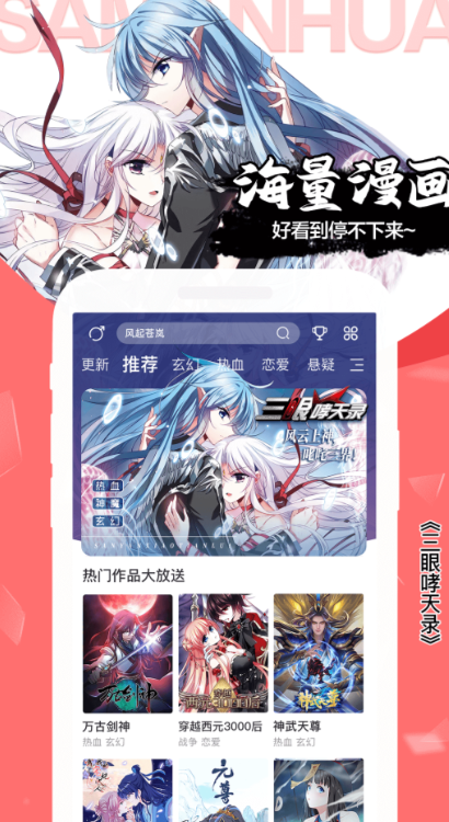 《薯条漫画》提供大量有趣的作品供用户选择。如果您无法找到心仪的漫画,可以在推荐页面中寻找,系统会根据您的喜好推送不同的内容,让您快速获取到喜欢的漫画类型。此外,应用还会第一时间通知您最新上架的漫画,使您的选择更加多样化。除此之外,还有其他功能提供给用户使用。
