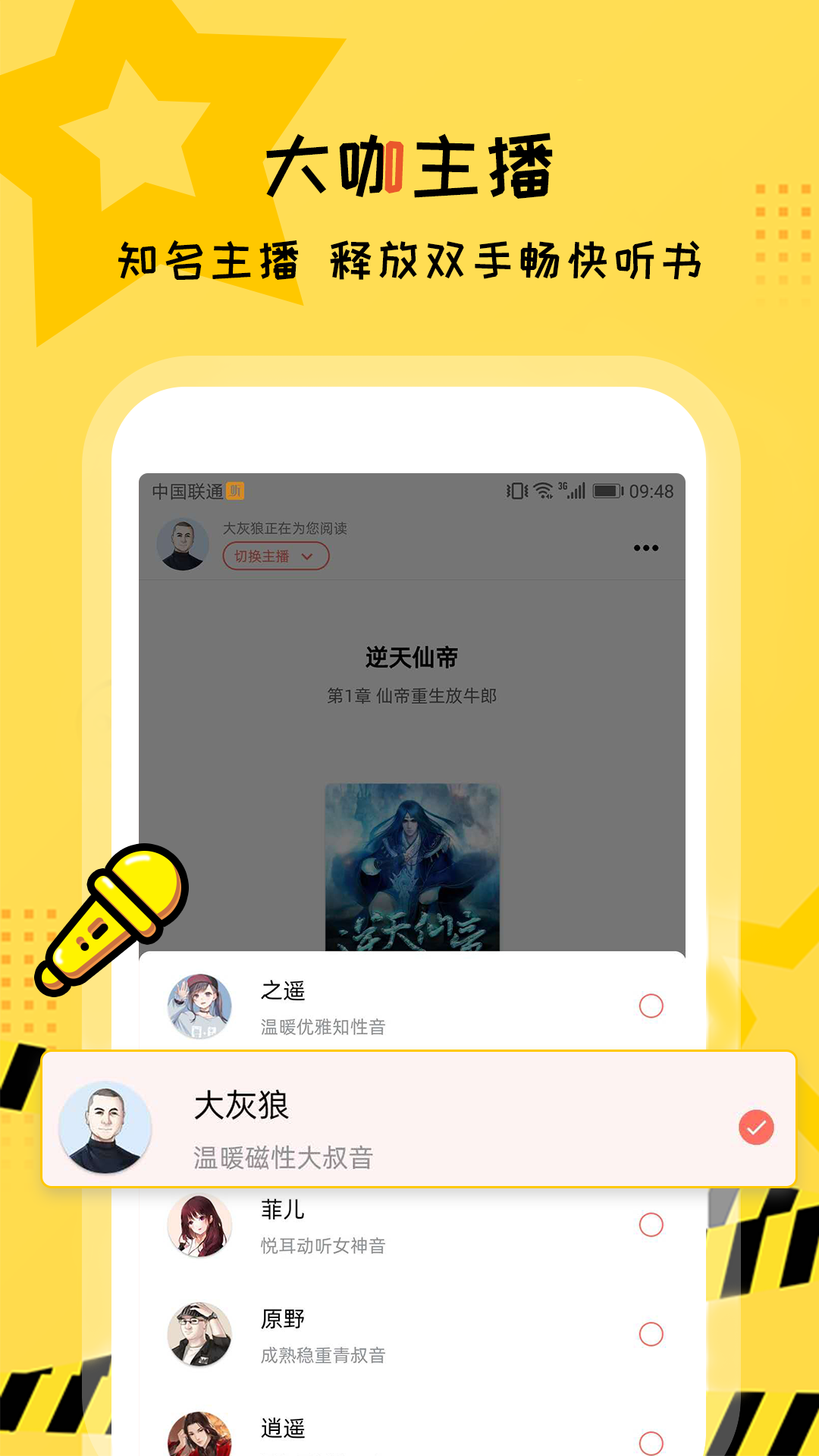 再去很专业的小说阅读APP里,用户可以拥有高质量的,聆听体验,还可以让大咖主播为用户在线播报各种经典的小说情节,百万免费小说,无限畅听,还有实时排行榜,直接点击,算是看书神器,追书神器和听书神器,让大家进入全民听书时代。