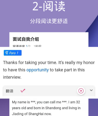 学习英语时重要的是多背多读,现在各种app上线学习英语的模式也有着很大的改变,再也不用像之前那样死记硬背,打开app之后掌握更科学更先进的方式。每天只需几分钟,可轻松提升口语水平,并积累更多的词汇和句子。使用这款软件可脱离书本背课文,让每位学者感受app的独特优势,其中有大量名著,我们可迅速找到感兴趣的文章。