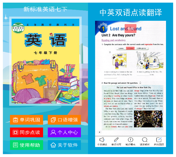 将七年级所需要学习到的英语知识点统一归纳整理,带领我们逐步学习重要的语法、短语以及句型,更是通过课文点读深刻理解文章意思和语法、发音。另外,这款软件还针对教材内容推出了很多的衍生小知识,让我们在提升英语成绩的同时开阔眼界。